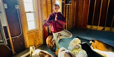 At Goat Yoga Joy, we believe that yoga is more than just a physical practice. We will help you learn how the breath can help you move more mindfully and discover tools that can help you deal with stresses, big and small, in our day-to-day lives. Our goal is to help our students cultivate these qualities through the practice of yoga and healing interaction with our goats.